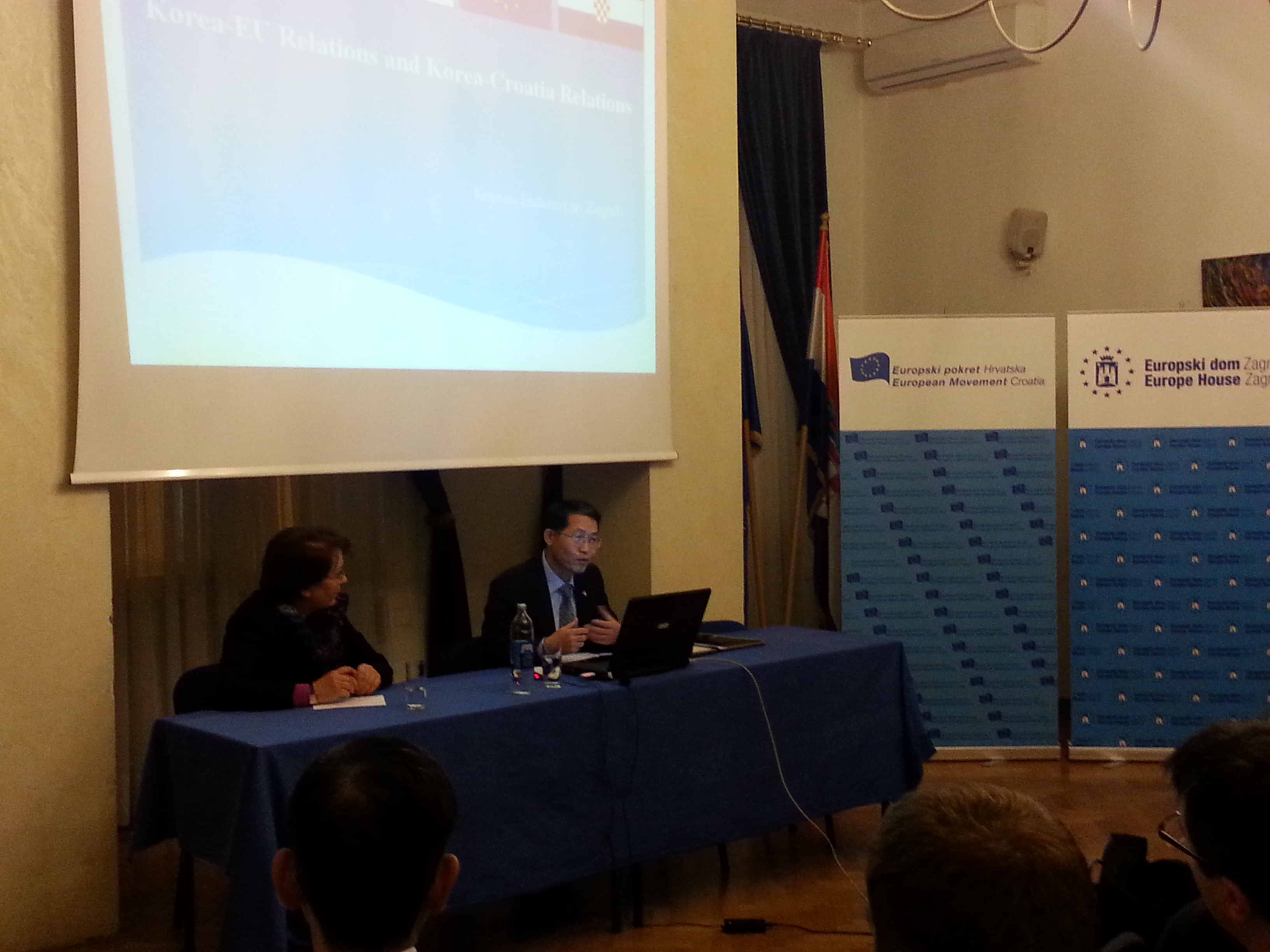 Europski pokret Hrvatska i Europski dom Zagreb održali su dana 26. studenog 2015. predavanje veleposlanika Republike Koreje u Republici Hrvatskoj Nj. E. g. Hyung-Won Suh. Tema predavanja bila je Koreja i odnosi sa Europskom unijom & Koreja i odnosi sa Hrvatskom.